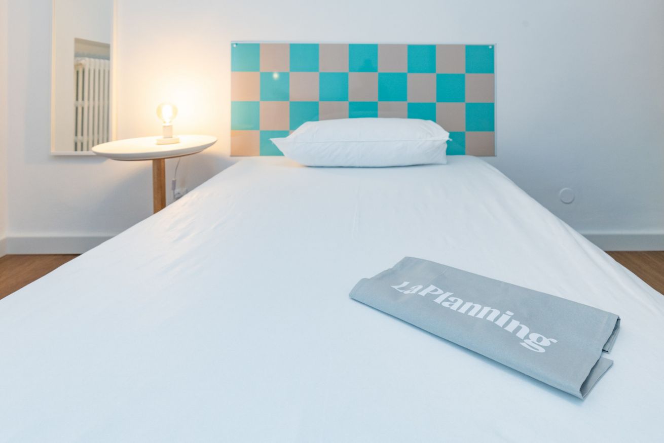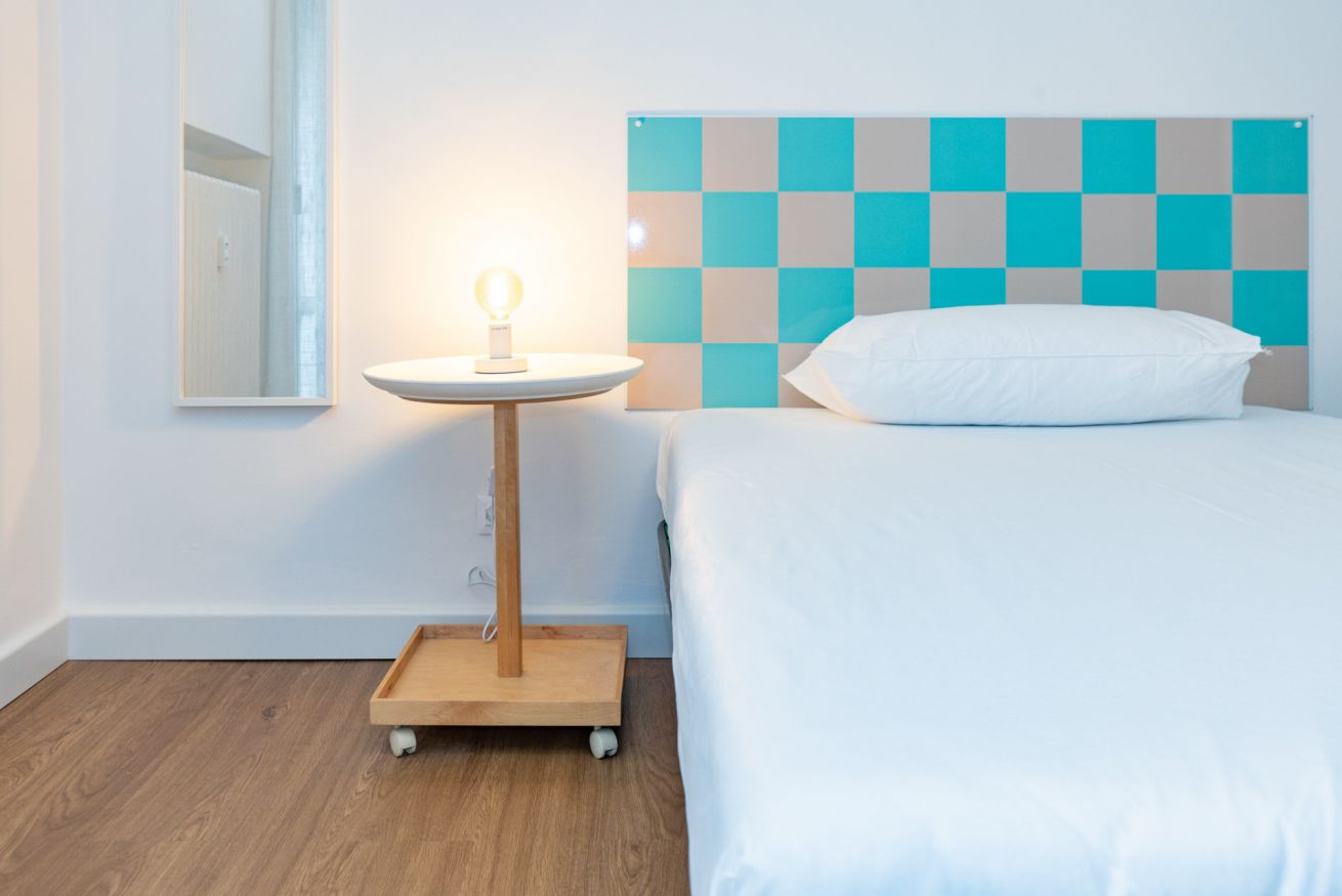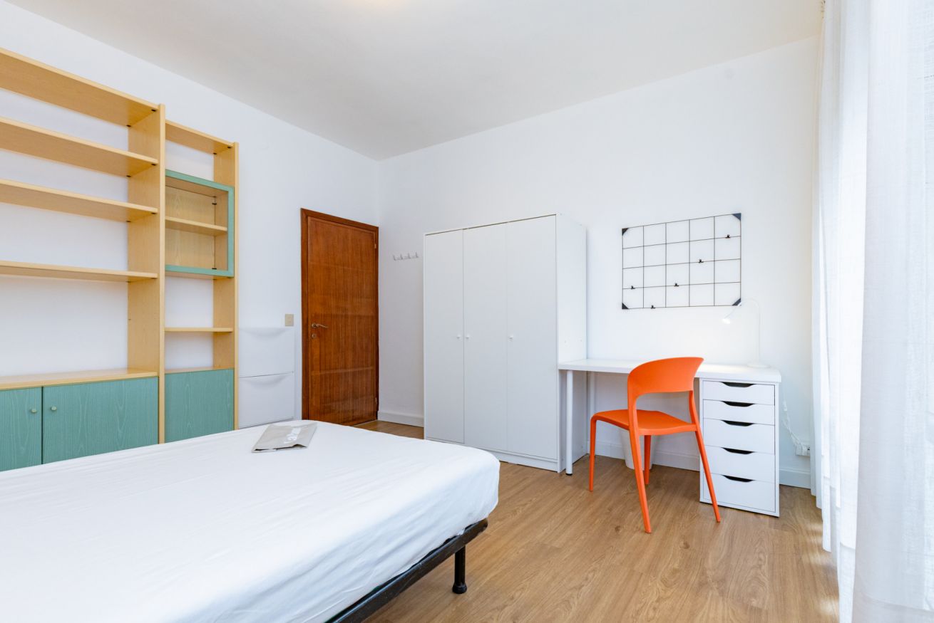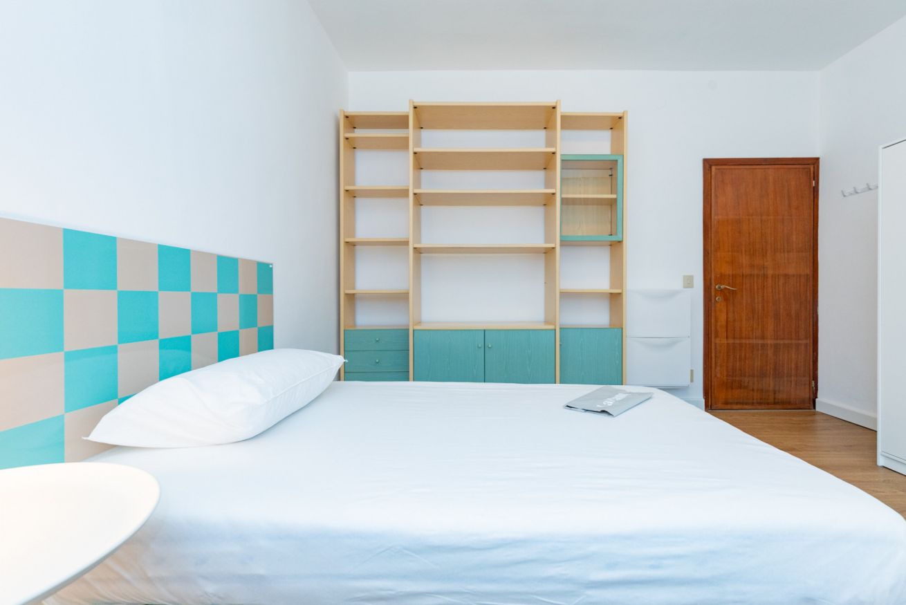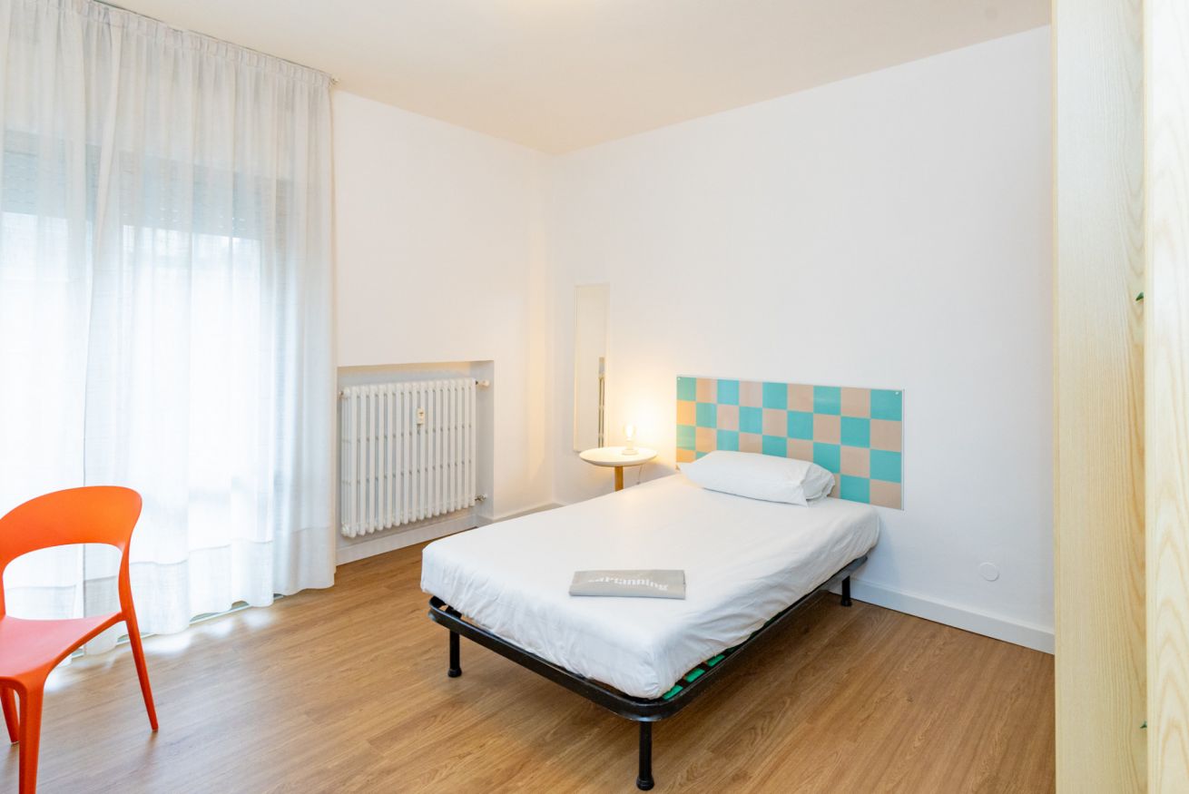 Camera Privata ad uso singolo con letto ad una piazza e mezza, comodino ed abajours, armadio doppio, comò, scrivania e lampada, specchio, attaccapanni, cestino e cesto portabiancheria. Inserita in alloggio con altre 3 camere private e con le seguenti aree condivise: ingresso, cucina e 1 bagno.