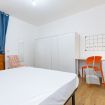 Camera Privata ad uso singolo con 2 letti accostati, comodini ed abajours, armadio doppio, comò, scrivania e lampada, specchio, attaccapanni, cestino e cesto portabiancheria. Inserita in alloggio con altre 3 camere private e con le seguenti aree condivise: ingresso, cucina e 1 bagno.