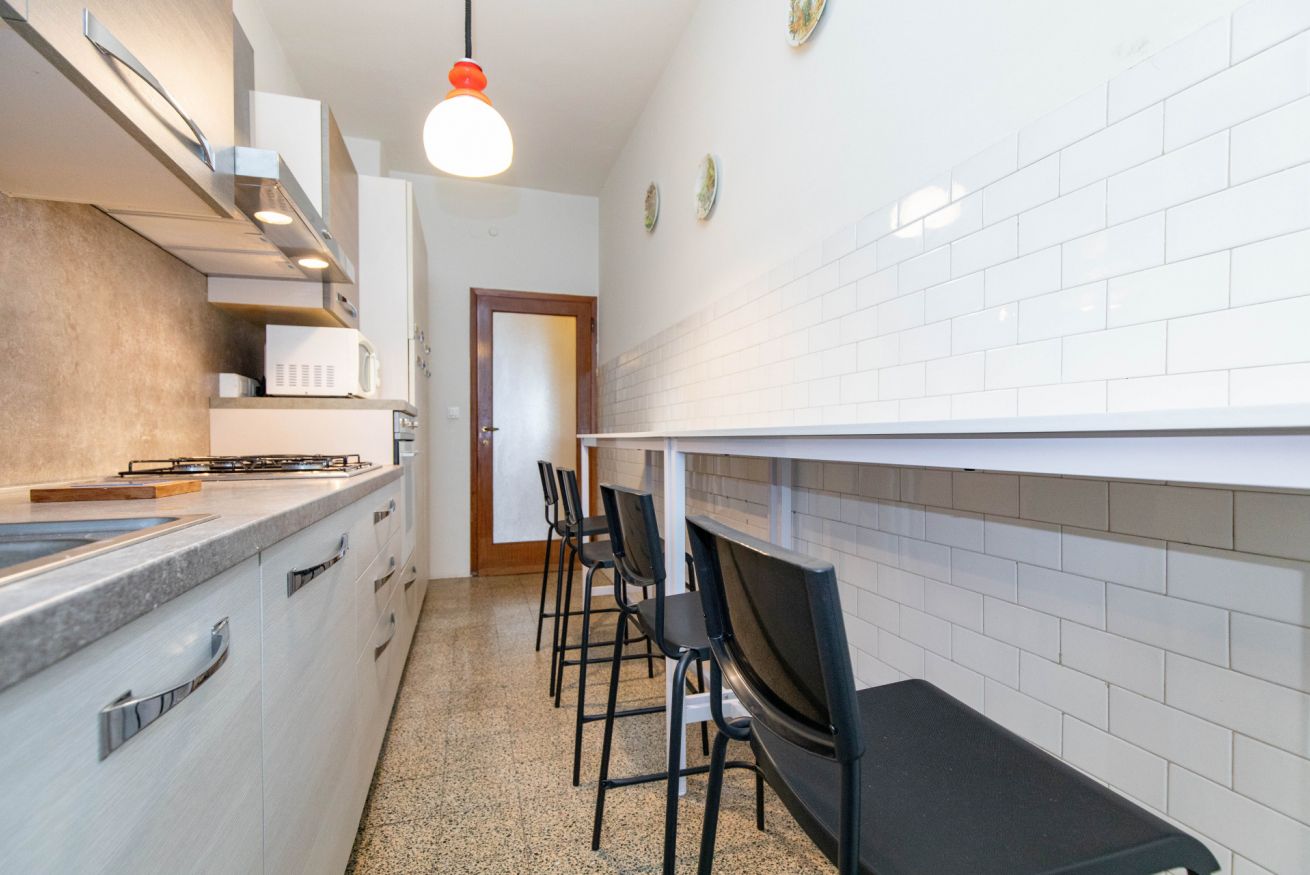 Appartamento situato nel pieno centro di Mestre, a pochi passi dalla Stazione dei treni, e vicino alla fermata di autobus e tram per Venezia.