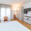 Camera Privata dotata di letto matrimoniale (uso singola) completo di materasso e guanciali, armadio, comodino, scrivania e sedia per lo studio inserita in alloggio con 3 camere private e con le seguenti aree condivise: cucina, terrazzino e 1 bagno.